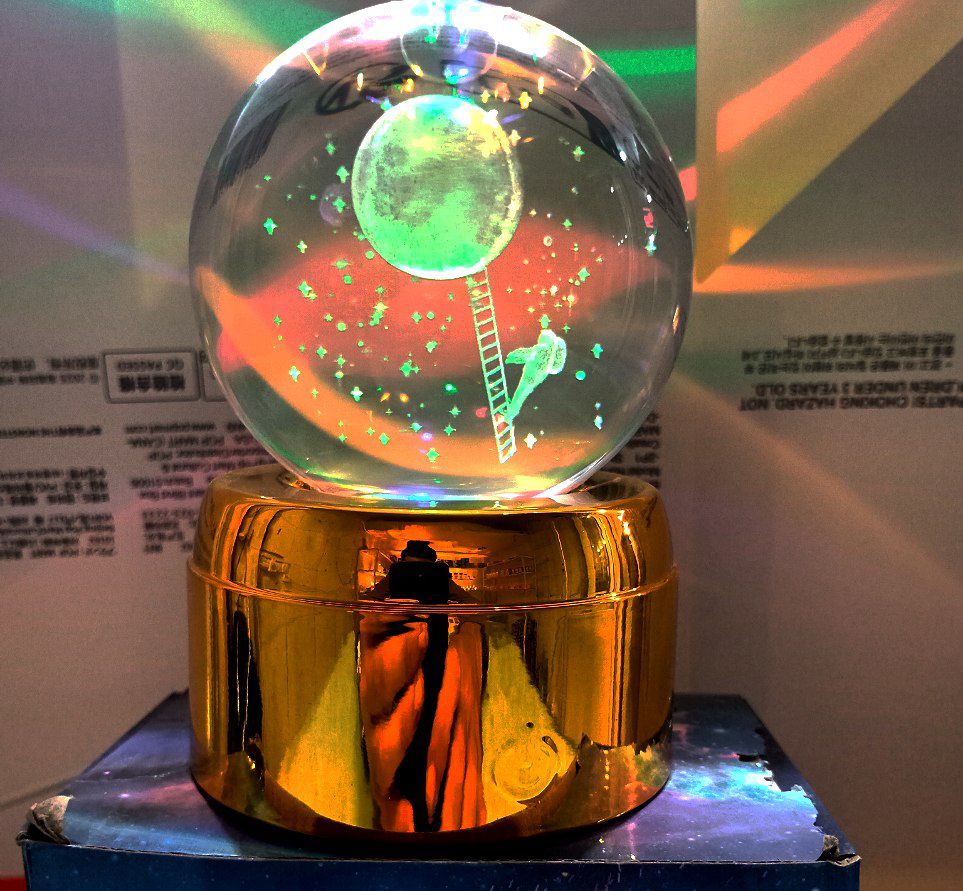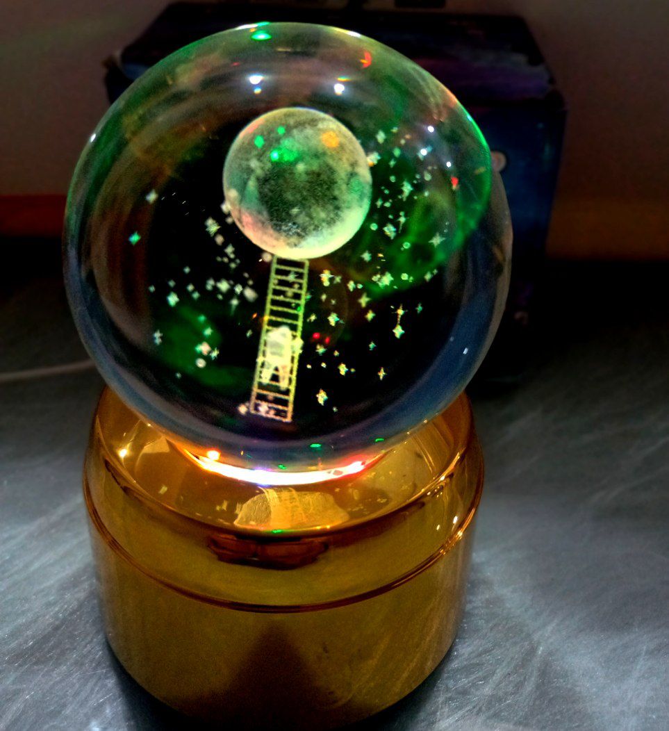 گوی چرخشی پایه طلایی رنگی دارای 7 رنگ هدیه خاص و زیبایی برای دکور بسیار شیک و چراغ خواب هم هست نور به سقف اتاق هم میزنه